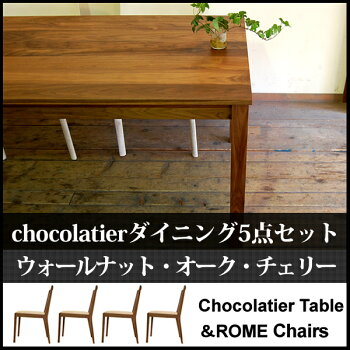 【国産】【無垢】ダイニングテーブルセット ダイニングセット 5点セット 幅150cm 4人掛け 4人用 椅子 イス 4脚 無垢材 ウォールナット オーク チェリー 北欧 chocolatierダイニングセット with ROMEサイドチェア