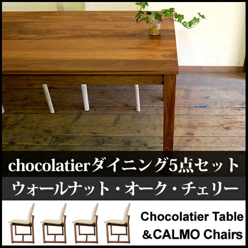 【国産】【無垢】ダイニングテーブルセット ダイニングセット 5点セット 幅150cm 4人掛け 4人用 椅子 イス 4脚 無垢材 ウォールナット オーク チェリー 北欧 chocolatierダイニングセット with CALMOサイドチェア