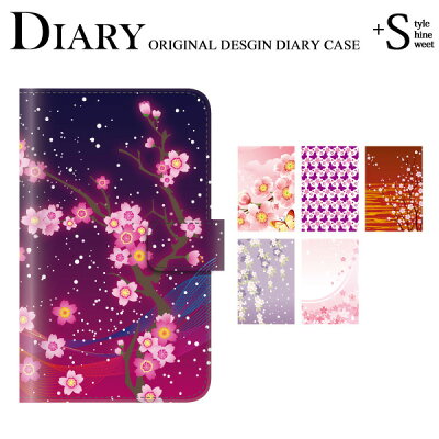 満月桜、朝桜、桜蝶柄、夕日桜、芝桜、桜花風など美しい 手帳型 ダイアリーケース。